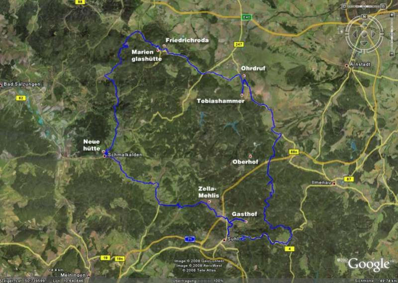 Wald, und zwar genau in dem Ort, wo Schwalbe vor 28 Jahren zusammengebaut wurde. Nach Suhl, das im Augenblick um die 410 Kilometer entfernt ist. Rein